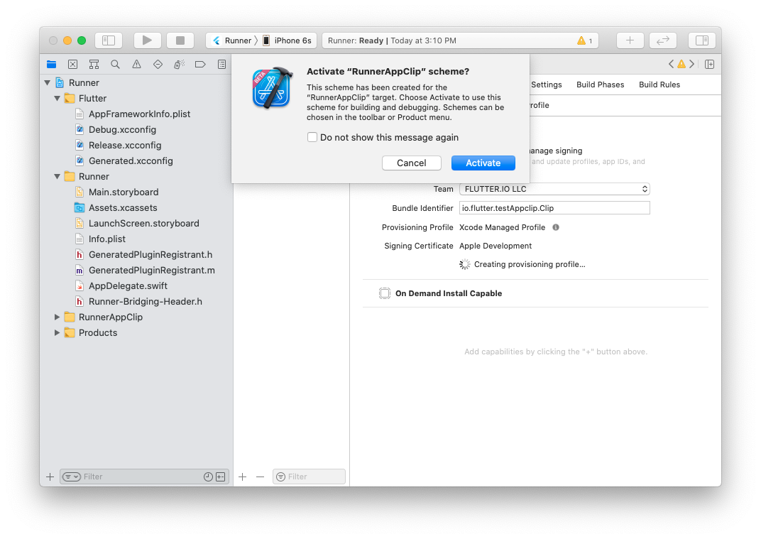 This ensures that your Flutter app and engine are embedded into the App Clip bundle.