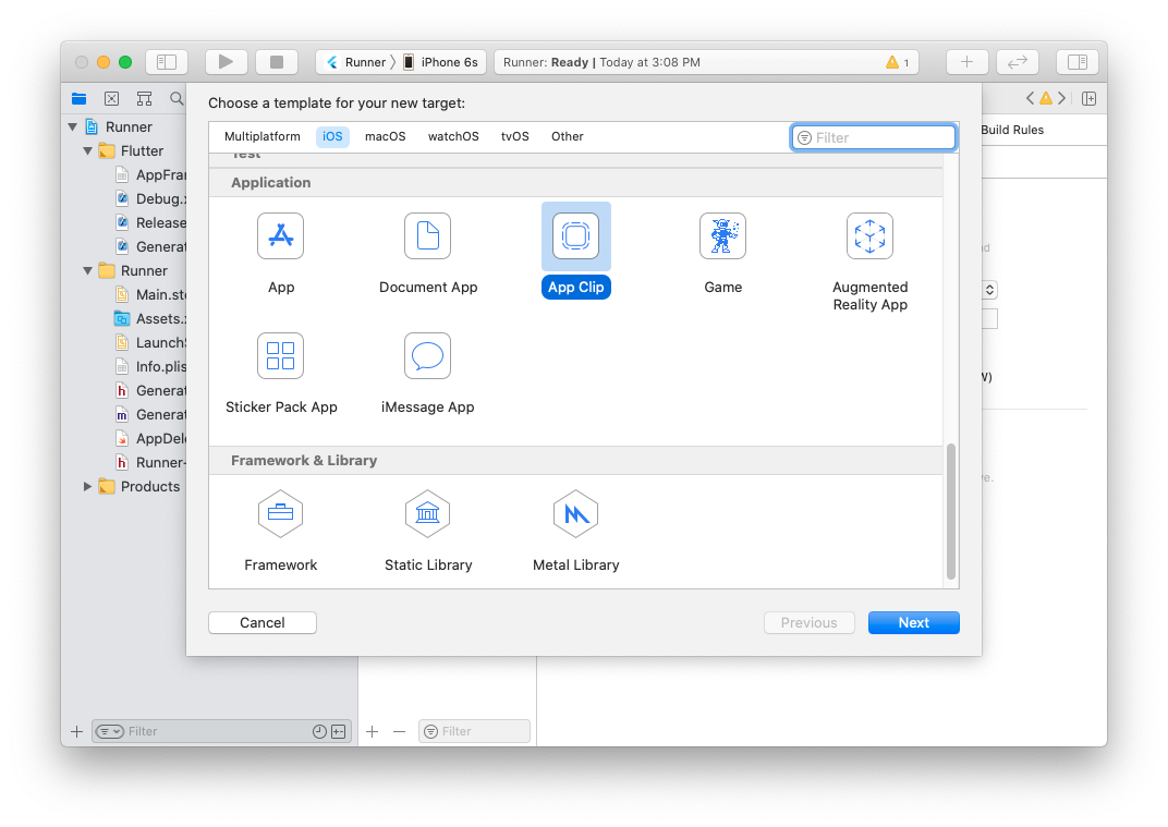 This guide describes how to manually add another Flutter-rendering iOS App Clip target to your existing Flutter project or add-to-app project.